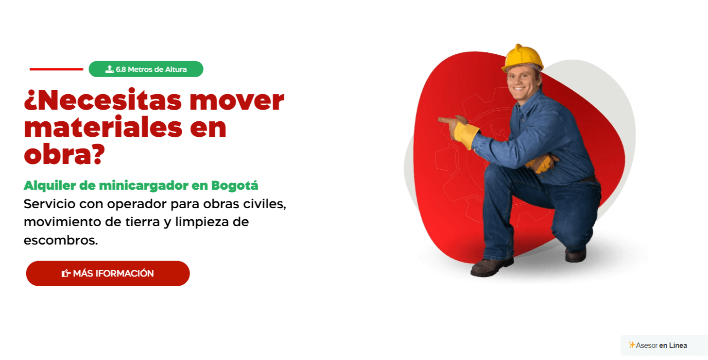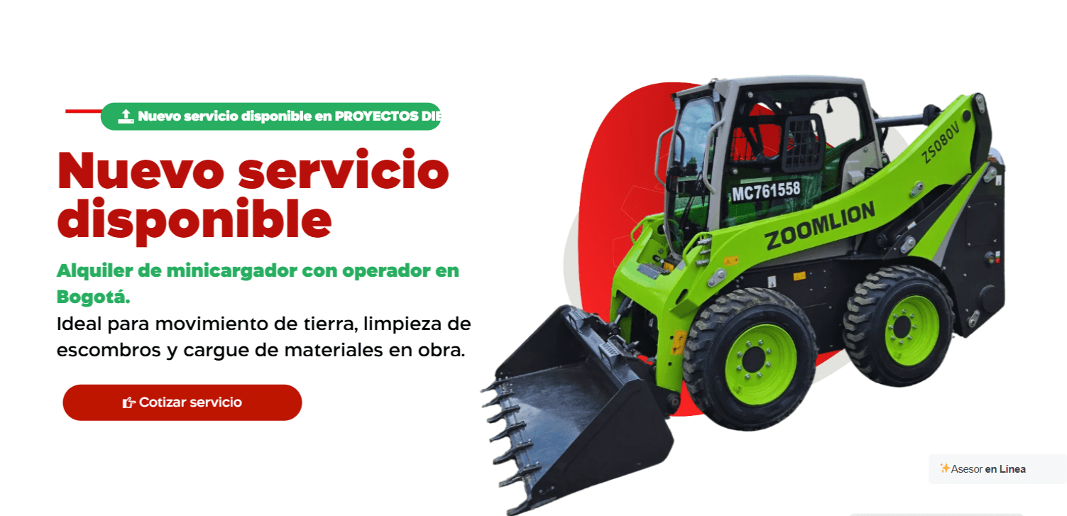 Alquiler de minicargador con operador en Bogotá.