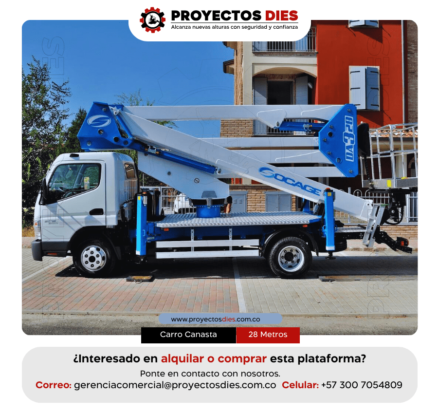 ¡Contáctenos ahora para obtener más información sobre la venta y alquiler del Carro Canasta 28 Metros y elevar sus proyectos a nuevas alturas!