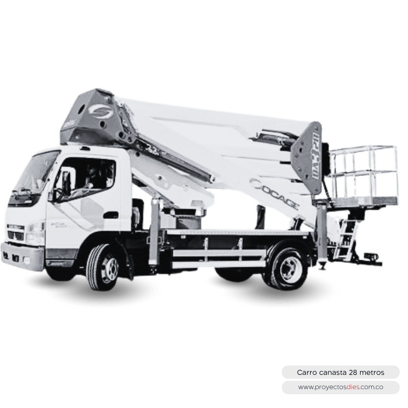 Carro Canasta 28 Metros: Equipos para trabajo en altura en Colombia. Venta y alquiler de carros canasta con una altura de trabajo de 28 metros.